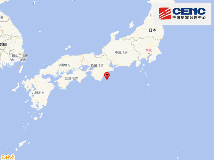 日本本州南岸近海发生5.8级地震,震源深度400千米