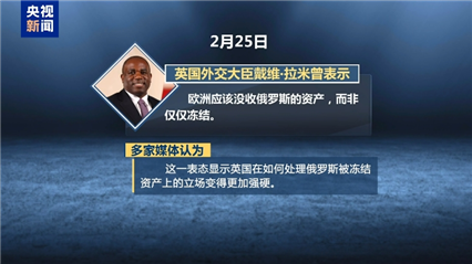 2月25日,英国外交大臣戴维·拉米曾表示,欧洲应该没收俄罗斯的资产,而非仅仅冻结。多家媒体认为,这一表态显示英国在如何处理俄罗斯被冻结资产上的立场变得更加强硬。