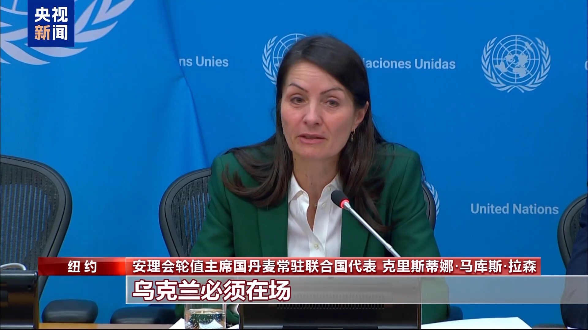 安理会轮值主席国丹麦常驻联合国代表 克里斯蒂娜·马库斯·拉森:我们在这里进行了讨论,上周联大也展开了一场很好的辩论,突出了其中的一些关键关切点,这一点非常重要。至于(安理会此前)通过的那项(涉乌克兰)决议,我们将其视为一个框架、一种意向。对我们而言,关键是在涉及乌克兰的讨论时,乌克兰必须在场,在涉及欧洲安全的讨论时,欧洲国家也应参与其中。