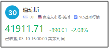 截至当天收盘,道琼斯工业平均指数比前一交易日下跌890.01点,收于41911.71点,跌幅为2.08%;标准普尔500种股票指数下跌155.64点,收于5614.56点,跌幅为2.70%;纳斯达克综合指数下跌727.90点,收于17468.33点,跌幅为4.00%。