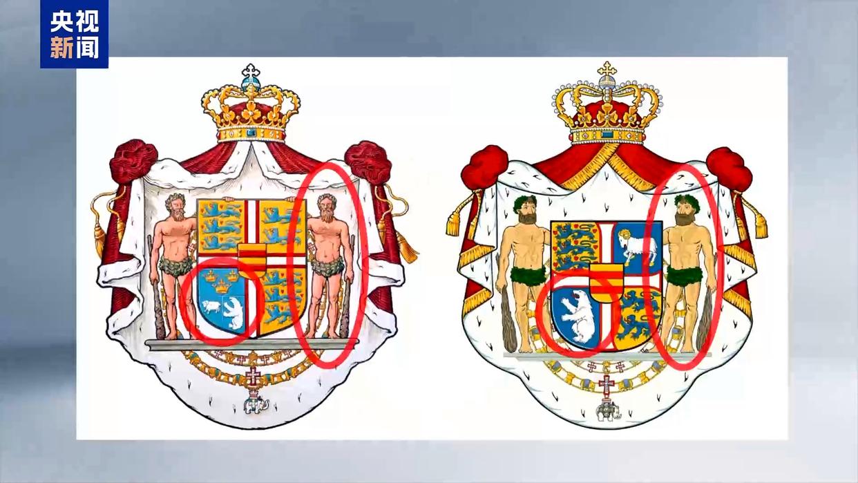 总台记者 郝晓丽:丹麦在2025年1月推出了新国徽,不仅将代表格陵兰岛的北极熊图案放在了更加醒目的位置,新国徽中的护卫体型更为健硕、手中的木棒也比之前粗大许多。丹麦王室问题专家表示,这是王室在正面回应特朗普的不当言论,彰显力量与国家自豪感,对海外领地释放出强烈的“团结”信号。
