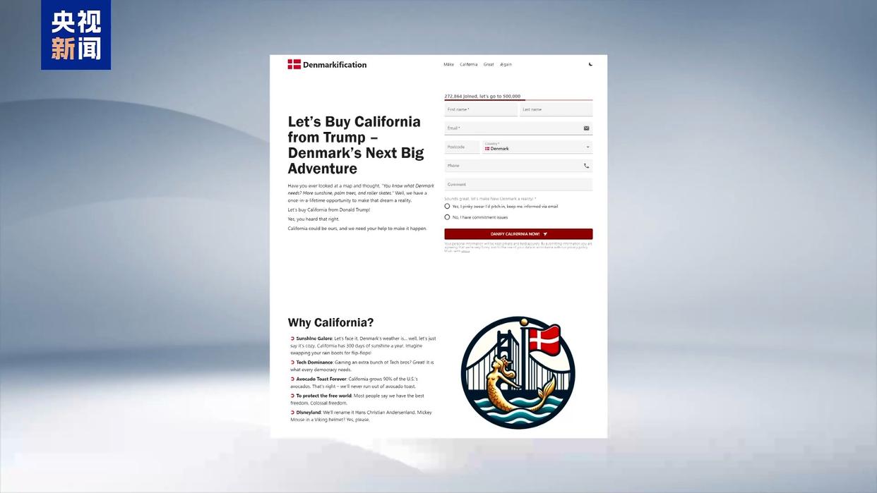 总台记者 郝晓丽:众筹组织方表示,“我们相信,只要价格合适,特朗普一定愿意放弃加州。”这无疑是对美国喋喋不休、企图强买他国领土的强烈讽刺。