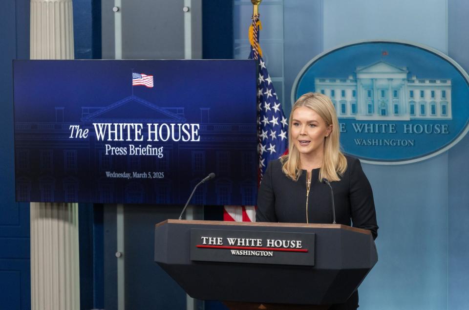 3月5日,美国白宫新闻发言人卡罗琳·莱维特在美国首都华盛顿参加例行记者会。新华社记者胡友松摄