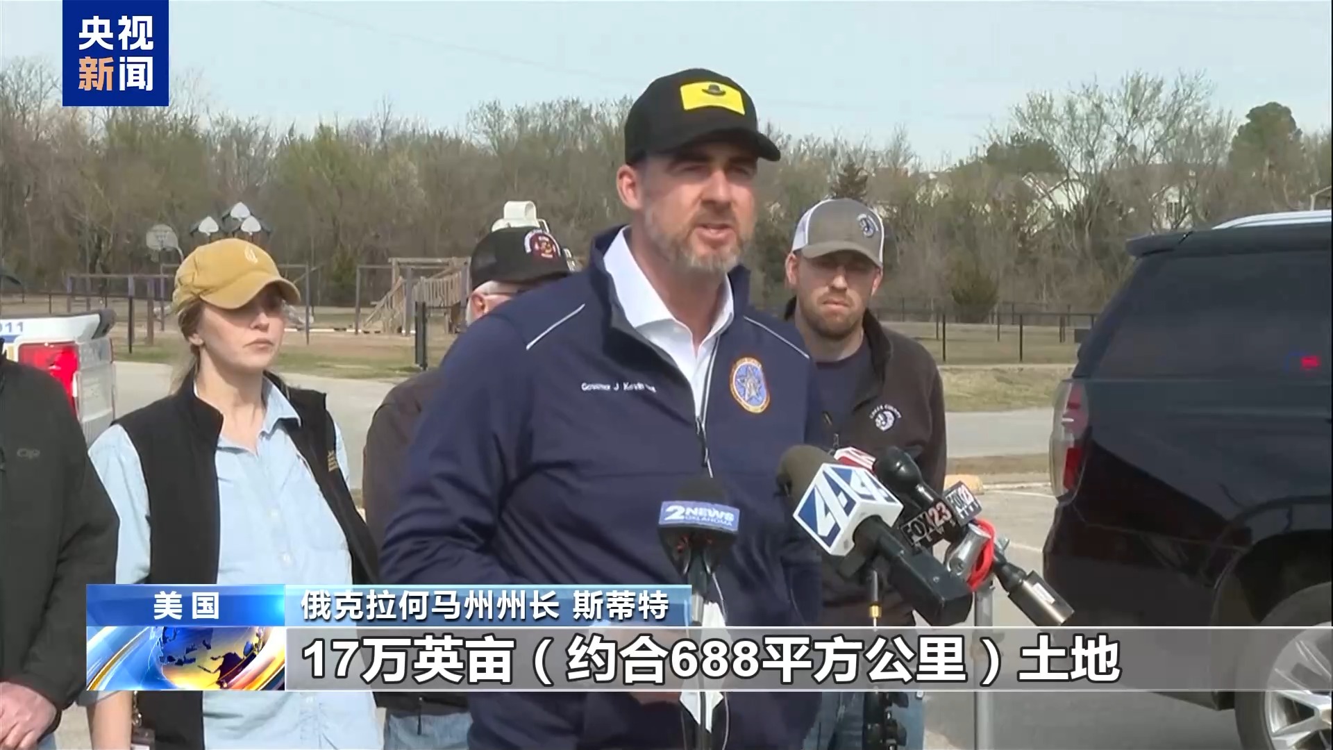 俄克拉何马州州长 斯蒂特:我们现在所知的是大约有17万英亩(约合688平方公里)土地被烧毁,林业部门还在努力统计确切的数字。