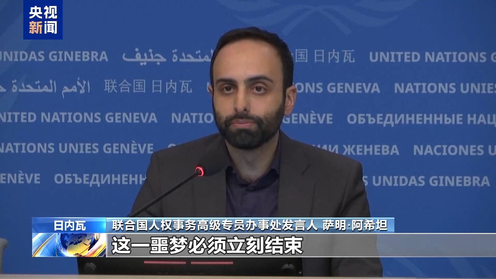 联合国人权事务高级专员办事处发言人萨明·阿希坦:以色列动用更多军事力量,只会让本就身处灾难下的巴勒斯坦人经历更多痛苦,这一噩梦必须立刻结束,被扣押人员都必须立即无条件获释,必须实现永久停火。我们呼吁所有有影响力的国家尽其所能,实现和平,以避免进一步伤害平民。