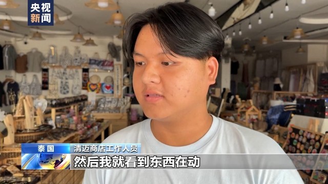 清迈商店工作人员:一开始我不知道是地震了,我只是感到头晕,然后我就看到东西在动。