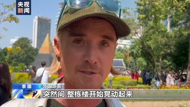 总台记者李敏:缅甸发生的地震造成泰国全国各地都出现强烈震感。首都曼谷震感持续了数分钟。我现在在一个临时避险处。民众纷纷离开高层建筑来到了这里。