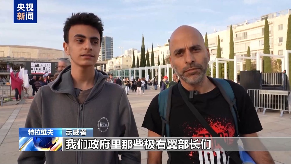 示威者:我们希望被扣押人员现在就能回来,希望举行大选,我们受够了以色列总理内塔尼亚胡。这个政府应该立刻下台。