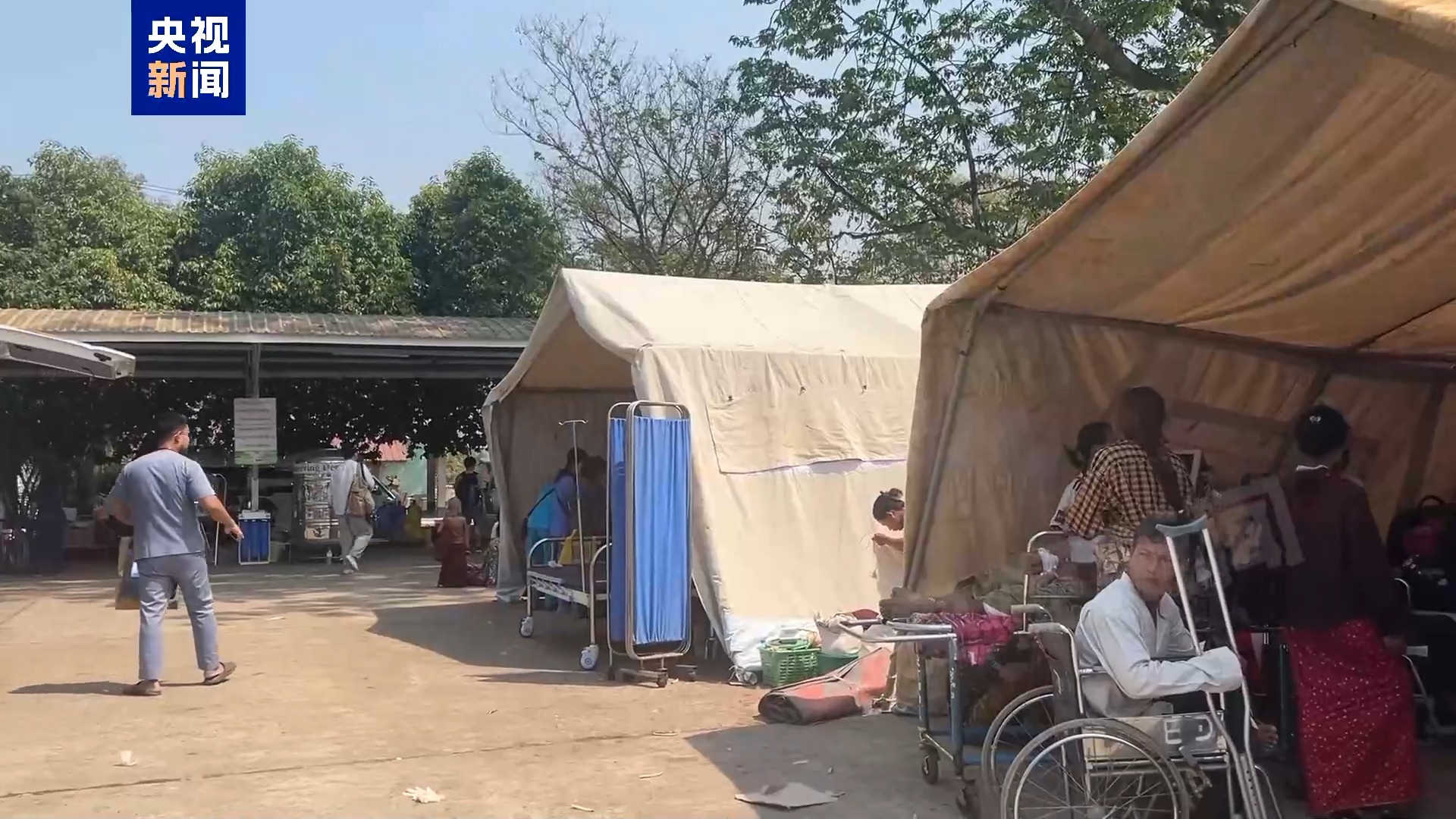 总台记者 刘畅:我现在是在缅甸首都内比都的一家大型综合医院,28日的大地震以及之后的数场余震给医院不同建筑物带来不同程度的损毁。安全起见,医生们把病床安排在了院中,并且调来了两辆大型的医疗车对这些地震造成的重症伤者进行救治。