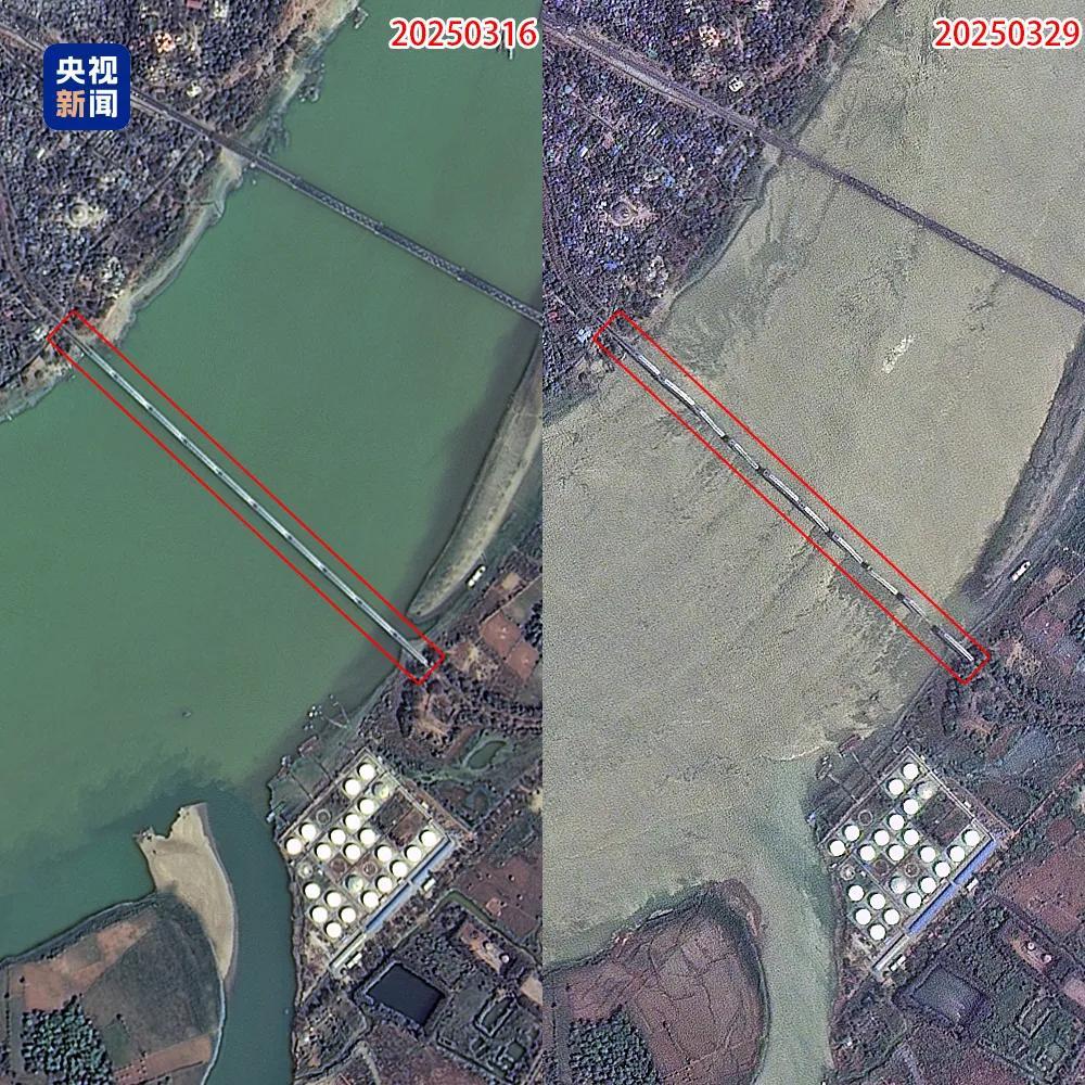3月30日,路透社发布一组卫星图片,显示了缅甸多个地区在地震前后的对比情况。从图片中可以看出,地震对缅甸造成了严重的破坏,大量建筑倒塌,缅甸曼德勒伊洛瓦底江上的地标性建筑物、已有90多年历史的阿瓦大桥也发生了部分坍塌。