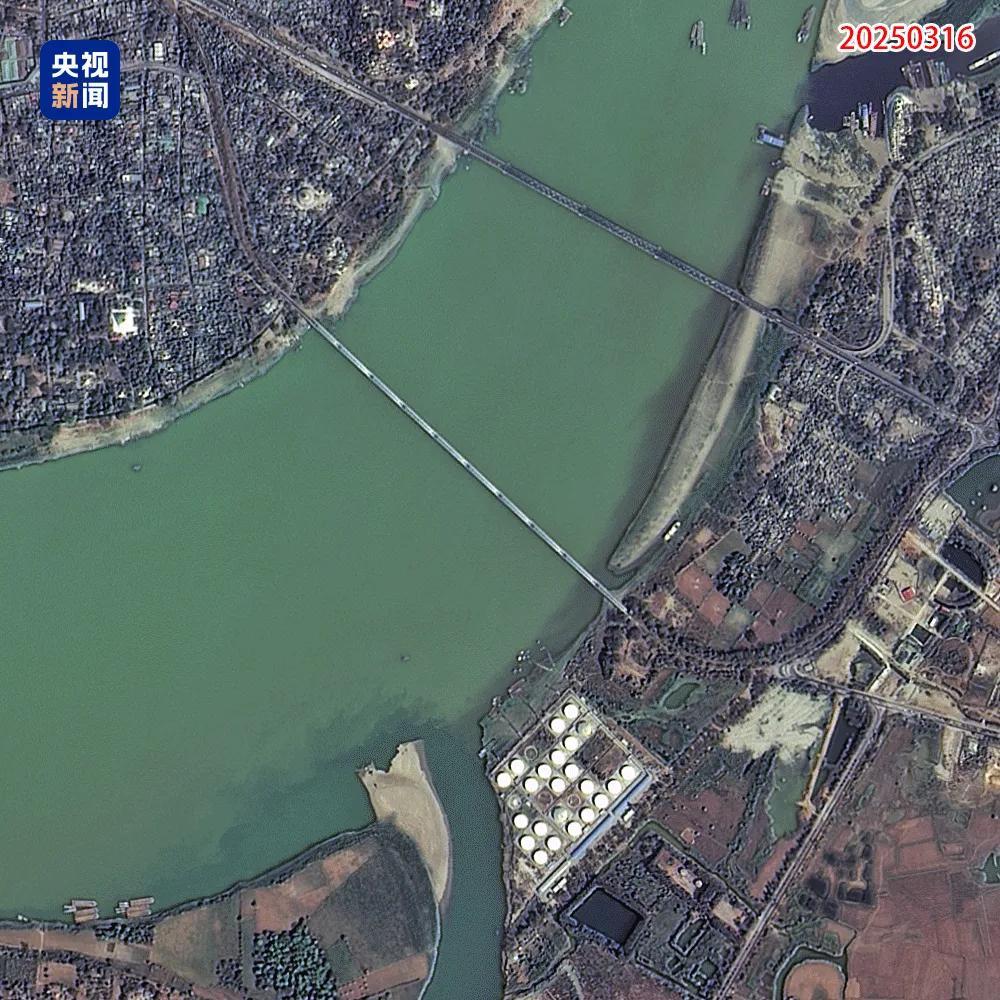 △缅甸地震受灾前后光学卫星图像(灾前:高分一号03卫星2025年3月16日采集,灾后:资源一号02D卫星2025年3月29日采集)