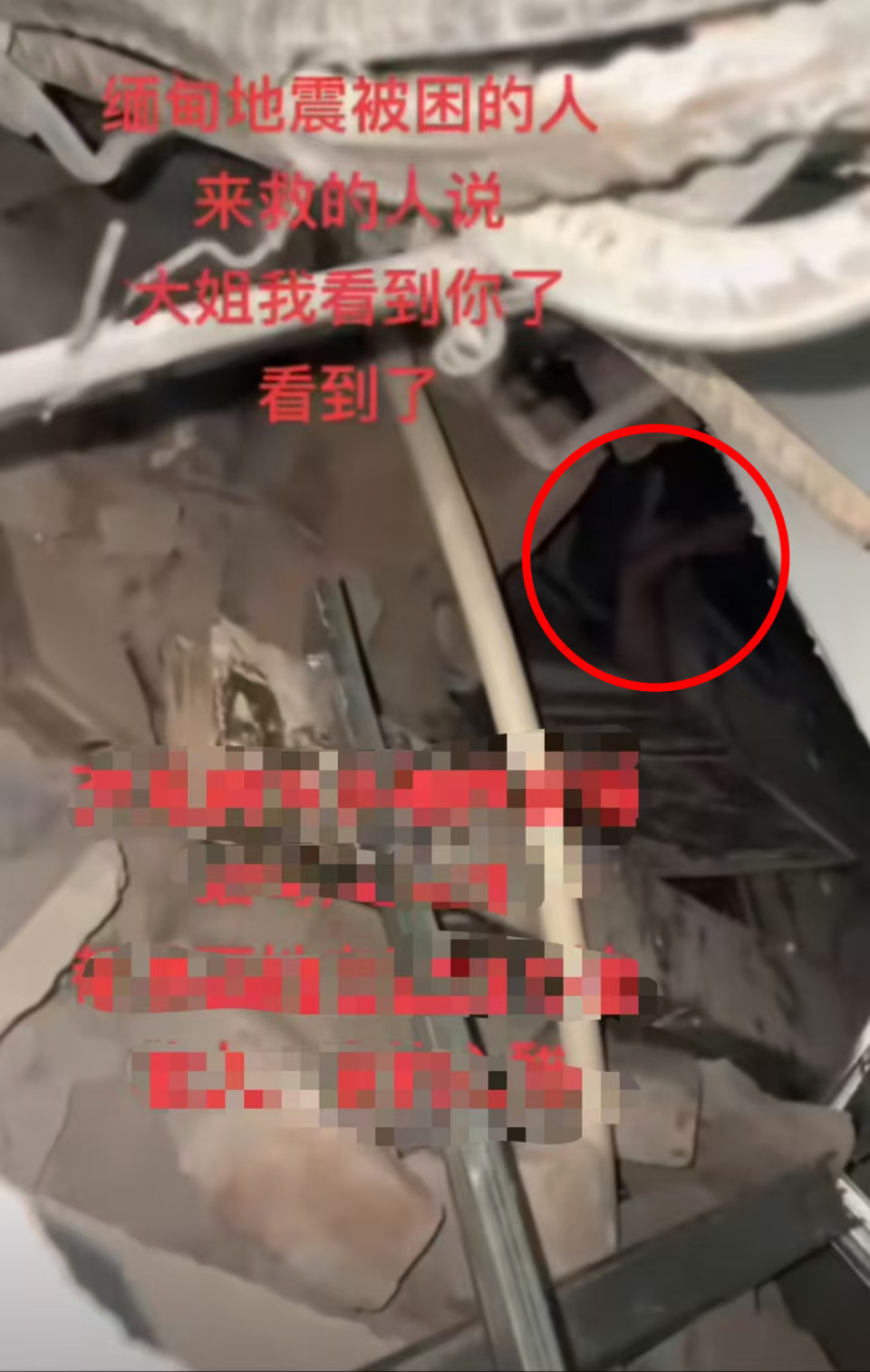 3月28日下午,缅甸强震导致曼德勒省多处建筑物损毁,省会瓦城的一栋11层公寓“Sky Villa”倒塌,多人被困。地震发生后一小时内,得知自己的两个姐姐被困在该栋公寓内,明女士第一时间向救援队和志愿者进行求救。