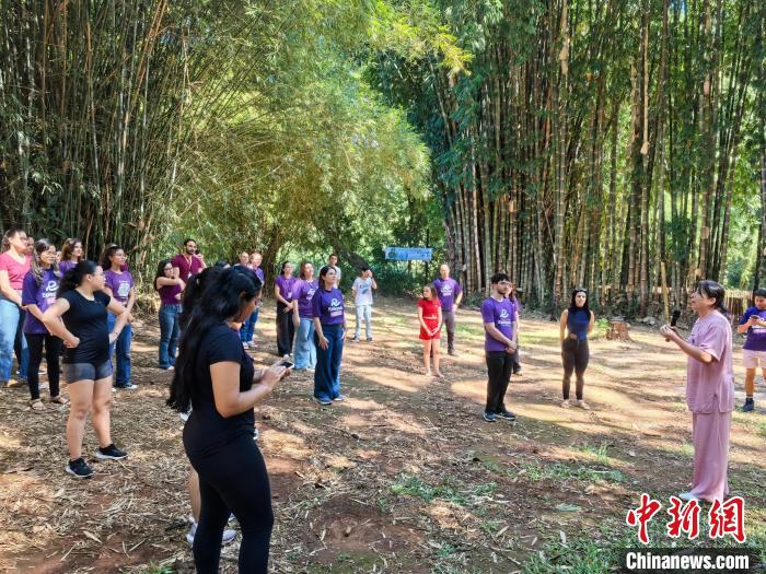 戈亚斯联邦大学中医孔子学院教师李庆云开展太极体验活动现场。马抱抱摄