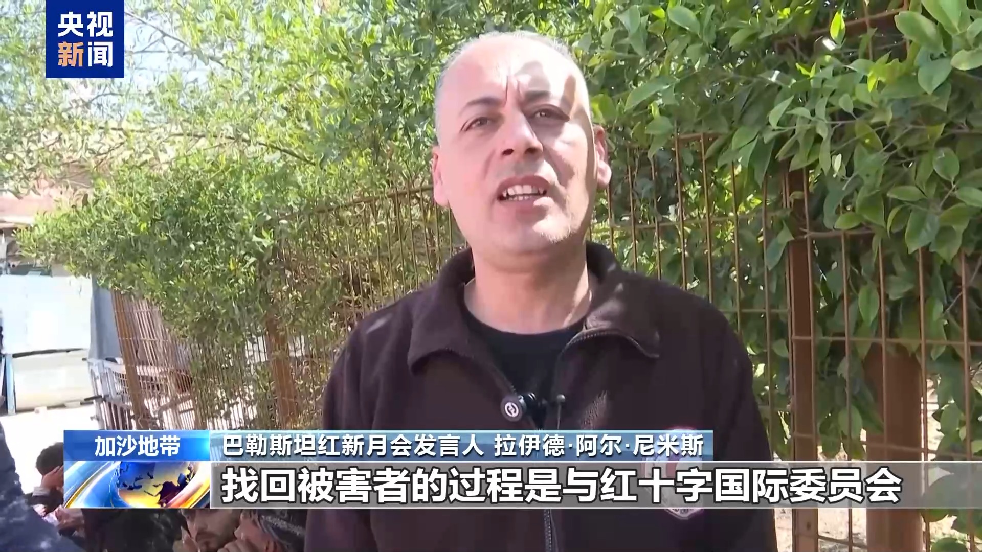巴勒斯坦红新月会发言人 拉伊德·阿尔·尼米斯:找回被害者的过程是与红十字国际委员会和联合国协调进行的。我们清楚地看到尽管他们的人道主义任务性质明确,但他们还是被以色列占领军冷血杀害,这是以军在这次侵略期间犯下的又一次反人类罪行。