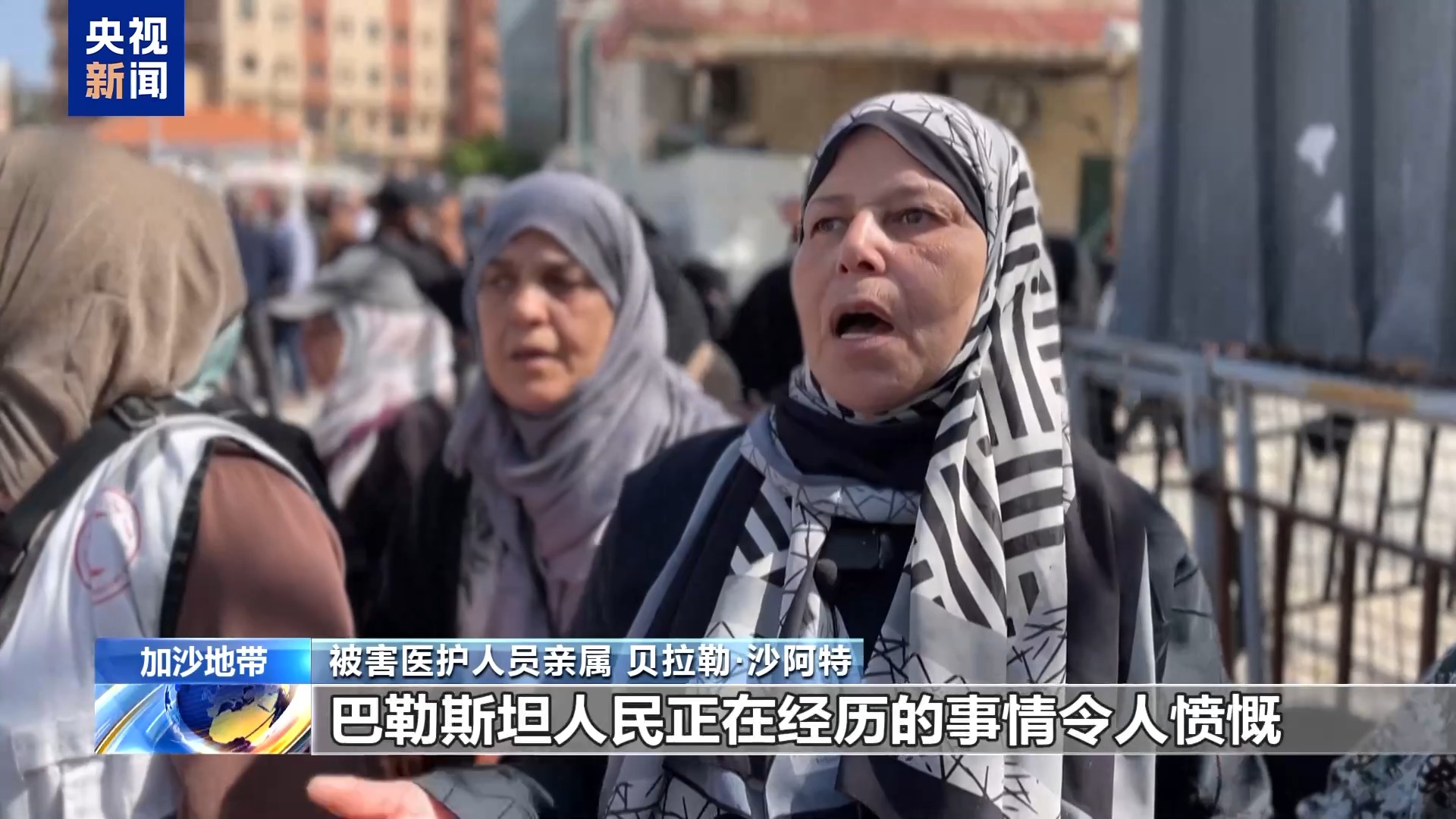 被害医护人员亲属 贝拉勒·沙阿特:(以军杀害医务人员)是蓄意为之。他们去救助伤员,我们等了他们十天,不知道他们的命运。昨天(3月30日)他们被带来了,一些人的尸体已腐烂,一些人的手被绑着。巴勒斯坦人民正在经历的事情令人愤慨,够了,真是够了。