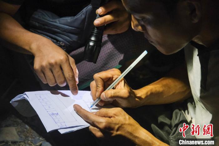 “既然探测到生命迹象,我们就要争分夺秒,只要有任何机会,我们都不会放弃。”联合救援队现场指挥官强调。救援队员打着手电筒召开紧急会议,在本子上详细绘制出现场坍塌图示,通过翻译听取工作人员介绍倒塌酒店内部结构,以确认被困者具体位置。