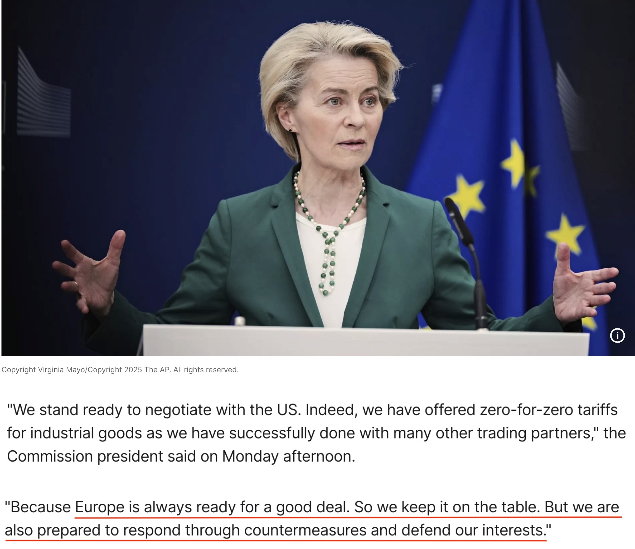 同日,欧盟召开贸易部长会议,讨论美国加征关税的影响,并就应对措施交换意见。这也是美国宣布征收“对等关税”以来的首次欧盟理事会全体会议。