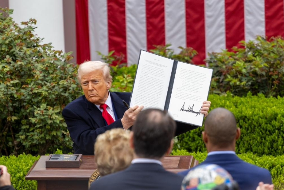 4月2日,美国总统特朗普在白宫展示签署后的关于所谓“对等关税”的行政令。图源:新华社