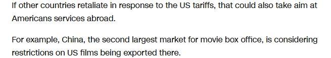 基于美国在服贸领域的巨大优势,当中国的反制措施对准美国电影产业并引发多家美国电影股票大跌时,美媒的预警自然合乎情理。毕竟,在这一领域优势有多大,遭到反制时,受到的打击就有多剧烈。