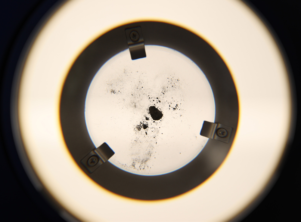 这是4月13日在位于日本大阪的中国馆内拍摄的嫦娥五号探测器采集的月球土壤样品。新华社记者 贾浩成 摄