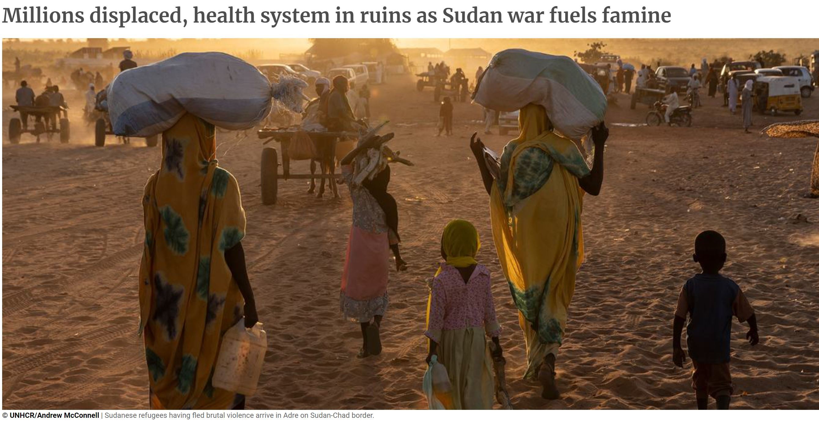 △联合国官网报道:苏丹战争加剧饥荒,数百万人流离失所,卫生系统遭到破坏。