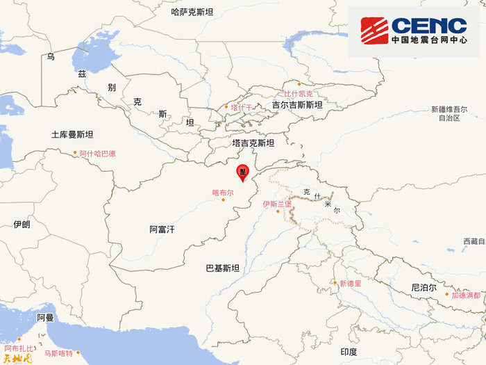 中国地震台网正式测定:04月16日07时13分在阿富汗(北纬35.80度,东经70.60度)发生5.7级地震,震源深度150千米。