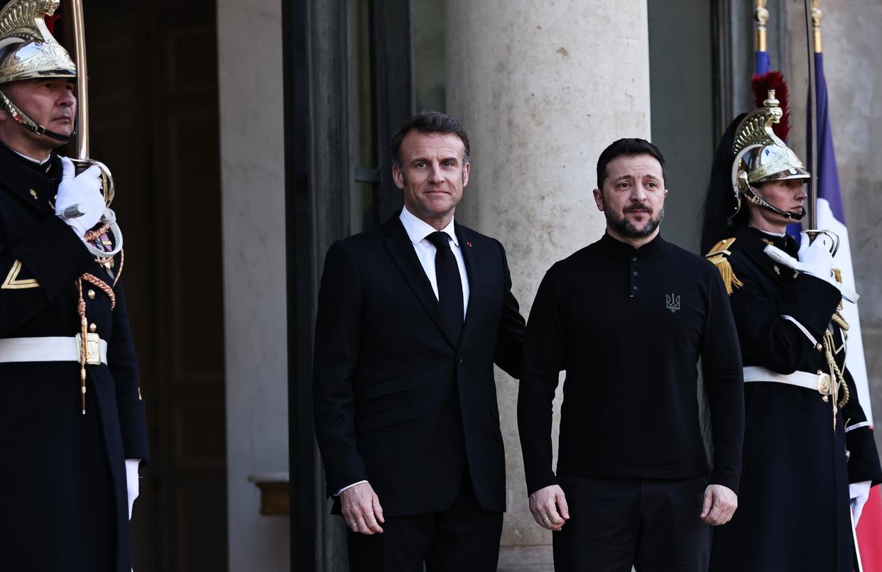3月26日,法国总统马克龙(中左)在巴黎总统府爱丽舍宫迎接到访的乌克兰总统泽连斯基。新华社记者高静摄 泽连斯基21日晚宣布,乌克兰、英国、法国和美国的代表23日将在伦敦举行会谈,讨论停火等问题。他22日发表永远不会承认被占领土属于俄罗斯的言论后,美国国务院说,国务卿鲁比奥由于“行程繁忙”,将不会参加在伦敦举行的会谈,凯洛格将参加会议。
