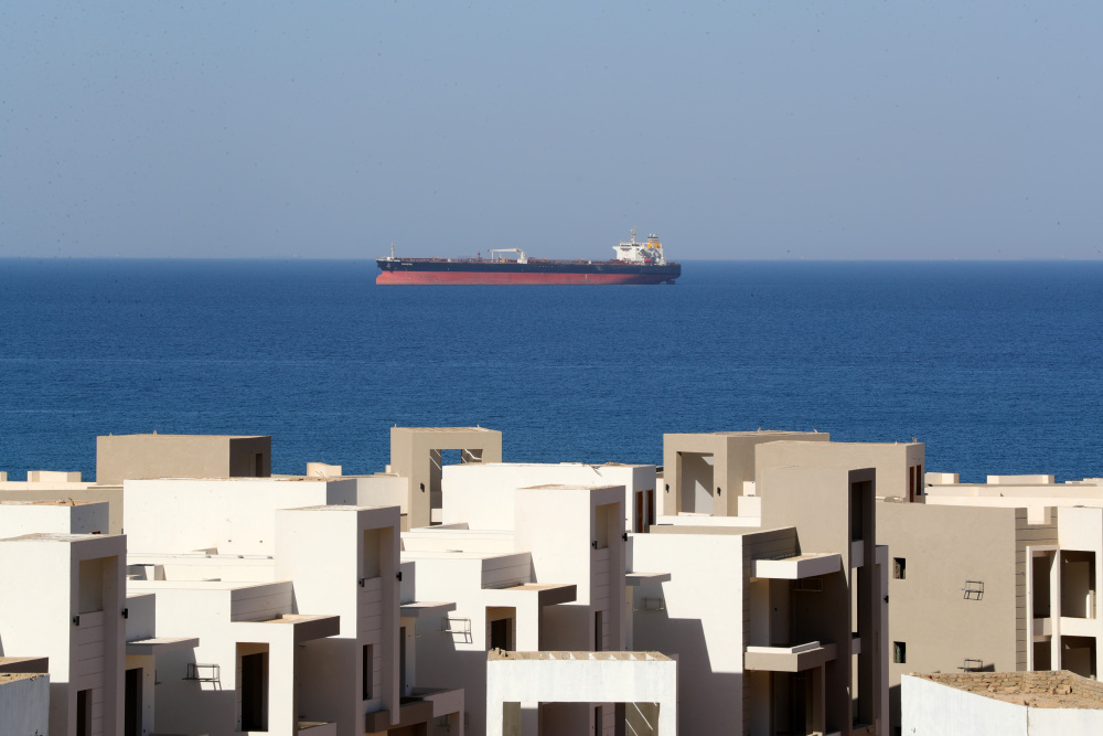 这是2024年10月8日在埃及苏伊士湾拍摄的行驶中的船只。新华社记者隋先凯摄