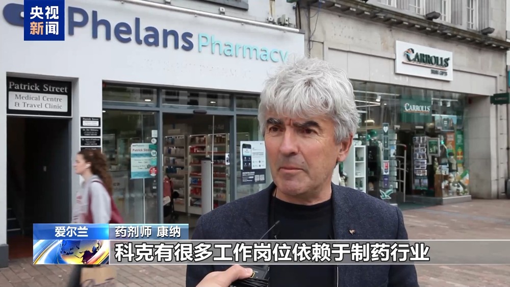 药剂师 康纳:科克有很多工作岗位依赖于制药行业。如果关税真的实施,影响会很大,我的很多朋友和邻居都在相关行业工作,他们都非常担心。这会造成双重影响,既影响民众就业,也影响整个国家。