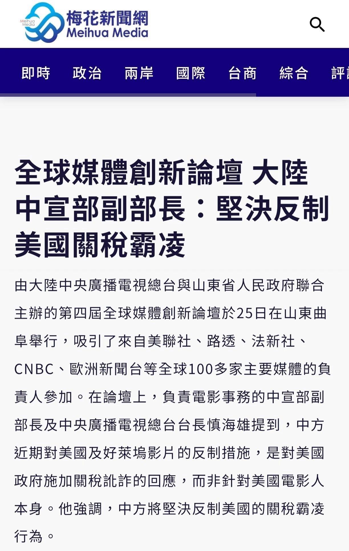 台湾“世界新闻网”的报道称,在美国政府关税讹诈的背景下,好莱坞电影在中国“频频受挫”。岛内舆论直言,好莱坞大片在美国本土和海外市场遭遇滑铁卢,美国片商接连进入“生存模式”“紧急状态”“外界不能小看台面下的好莱坞有多么恐慌”。