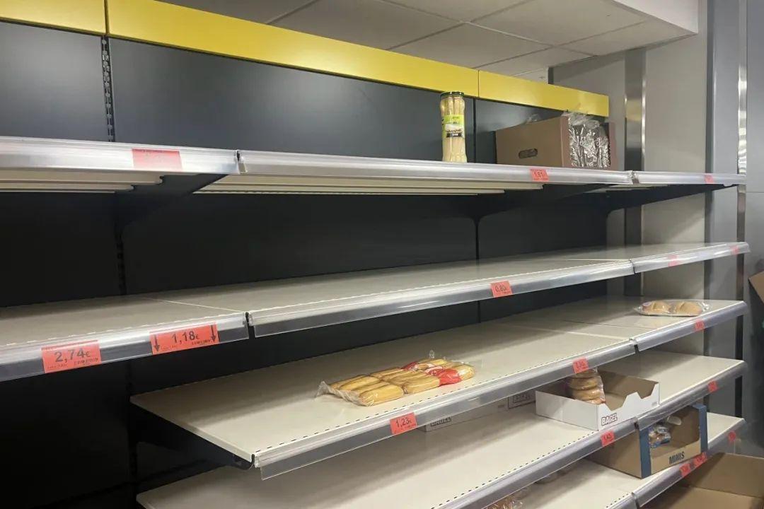 马德里一家超市被抢购一空的货架。受访对象李贝供图