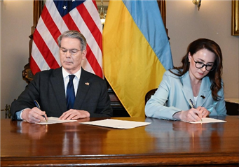 美国与乌克兰4月30日签署协议建立美国-乌克兰重建投资基金,即美乌矿产协议。(总台记者 王晋燕)