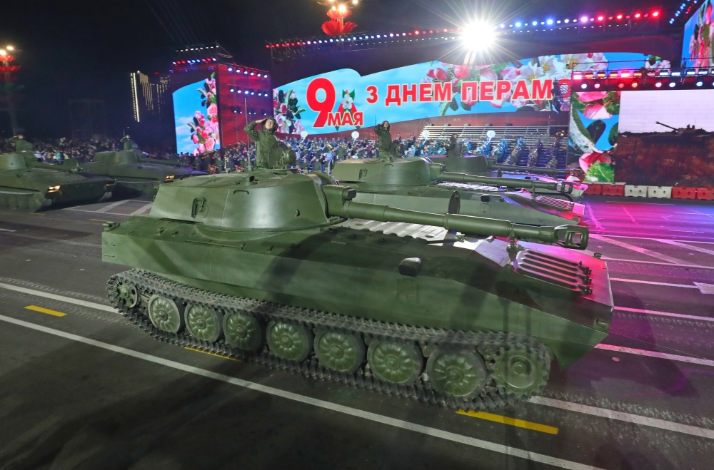 5月2日,在白俄罗斯首都明斯克,军用车辆编队参加纪念卫国战争胜利80周年阅兵式彩排。新华社发(任科夫摄)