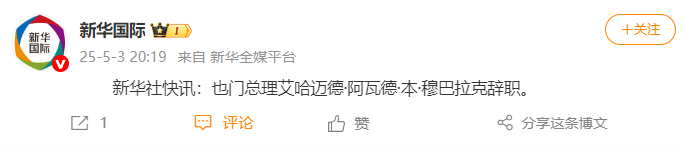也门总理艾哈迈德·阿瓦德·本·穆巴拉克辞职。