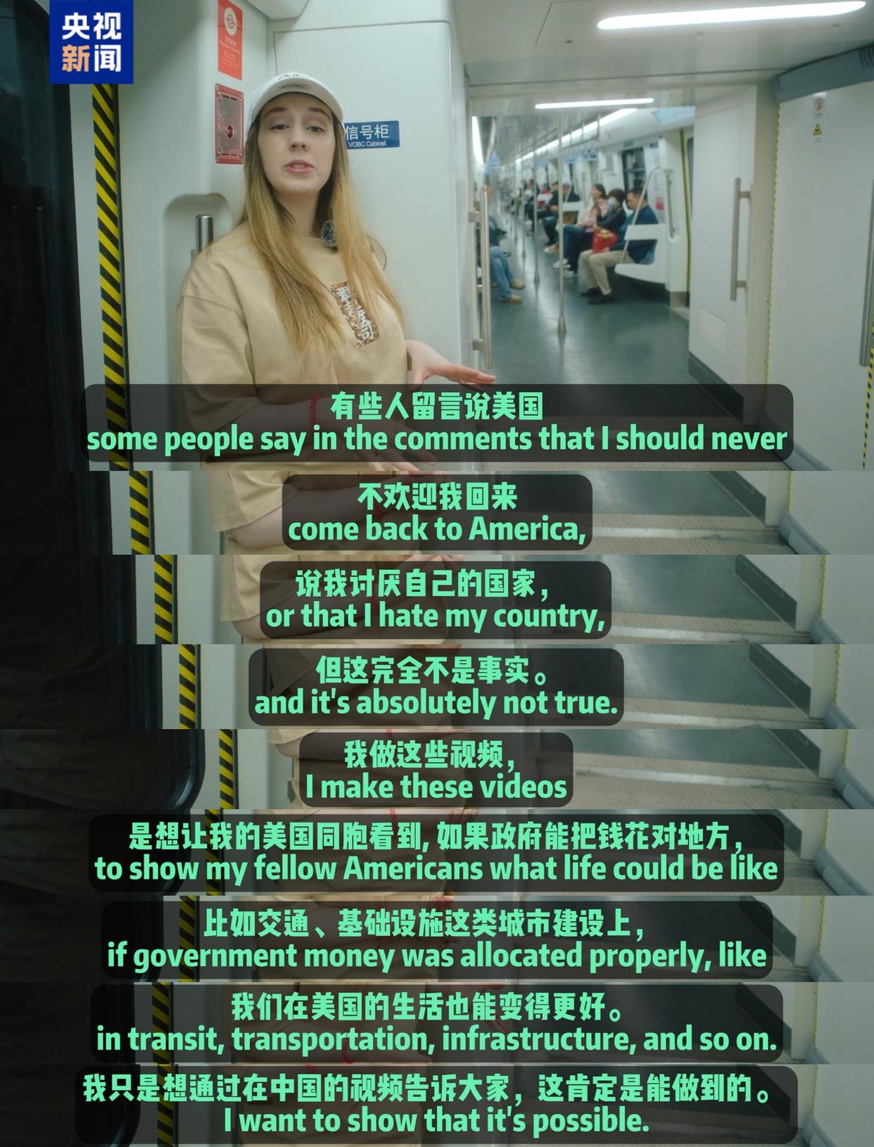 中国的快速发展也让@BeeRose in China感到震惊。她账号中夸赞关于中国基建的视频遭受了美国同胞们的质疑,她在视频中坦言道“我不是讨厌自己的国家,我做这些视频是想让我的美国同胞看到,如果美国政府也能把钱像中国一样花对地方,美国人的生活也会变得更好。”