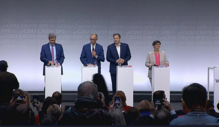 当地时间5月5日,德国联盟党(由基民盟及其姐妹党基社盟组成)与社民党举行新闻发布会,宣布正式签署联合执政协议,标志着德国新一届政府即将上台执政。