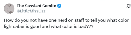 帖文翻译:怎么就没有一个懂行的员工来告诉你们哪种颜色的光剑代表着好、哪种颜色的光剑代表着坏???