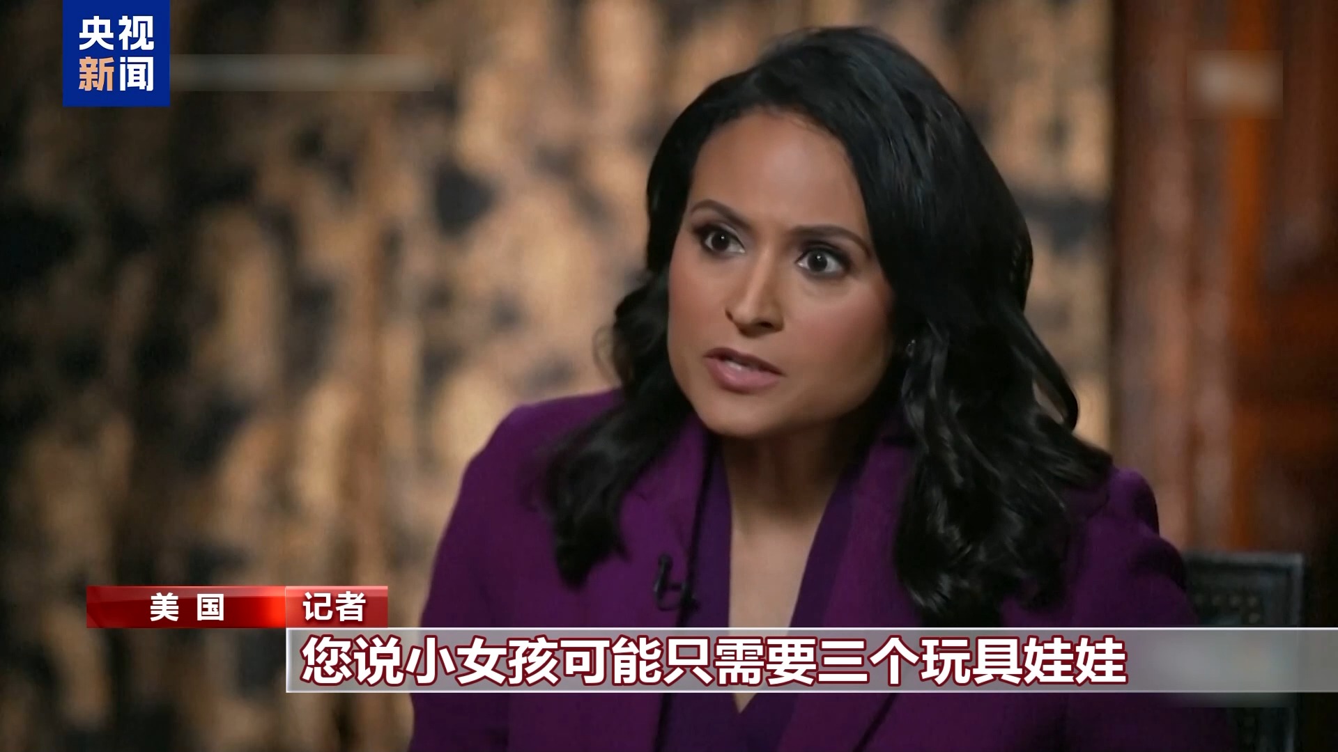 美国总统 特朗普:不,我不是这个意思,我只是在说小女孩们不需要三十个玩具娃娃,三个就够了。她们也不需要二百五十支铅笔,五支就够了。