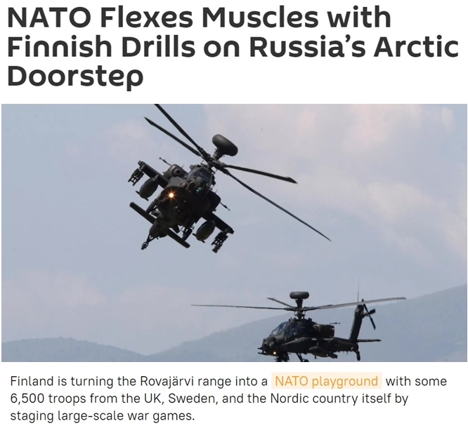 在芬兰境内进行演习,由芬兰军队主导,同时有英军和来自瑞典的作战人员参与演习。这说明,北约已经把芬兰视为针对俄罗斯进行威慑的前沿阵地。