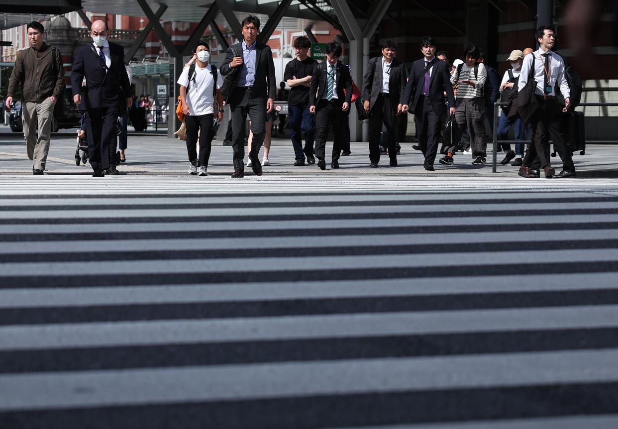 5月15日,在日本东京,行人通过东京站附近的一处人行横道。新华社记者贾浩成摄这项关于日本民众对国际事务看法的民调3月4日至4月14日进行,覆盖日本250个地区的3000名18岁以上人员,最终收回1867份有效答卷。