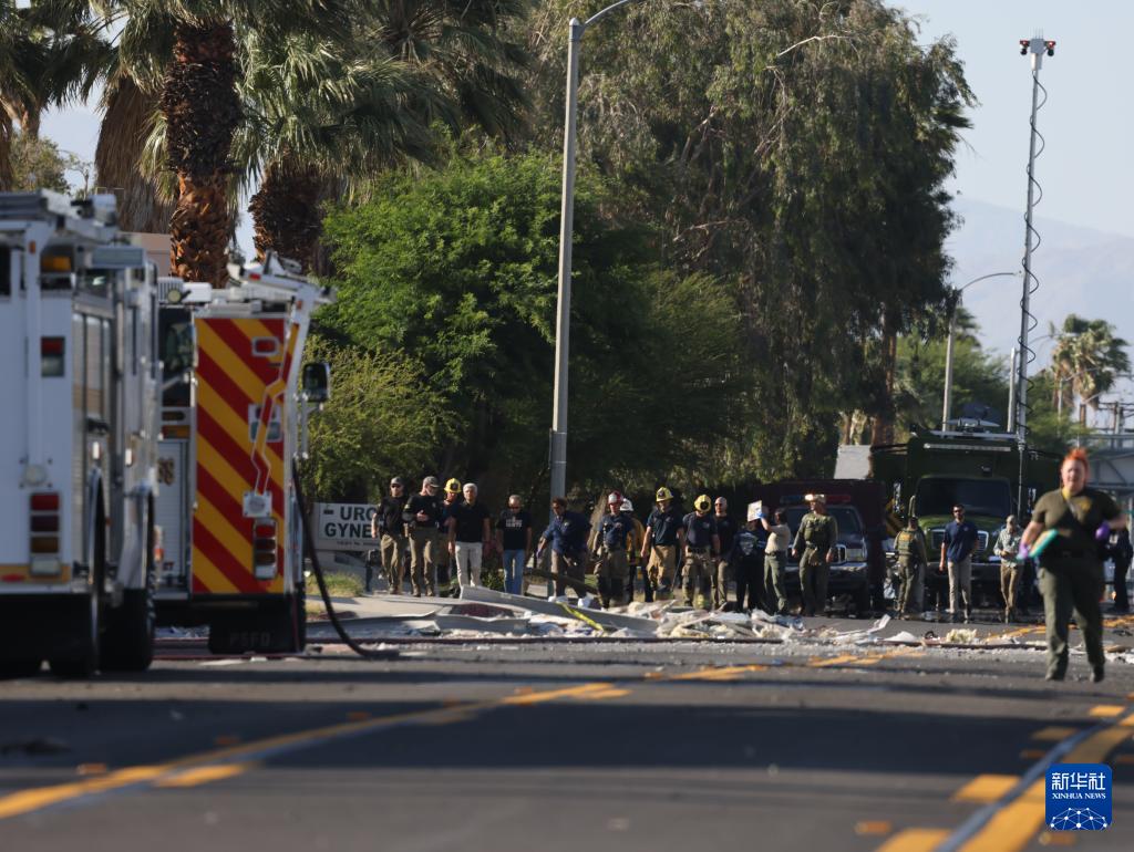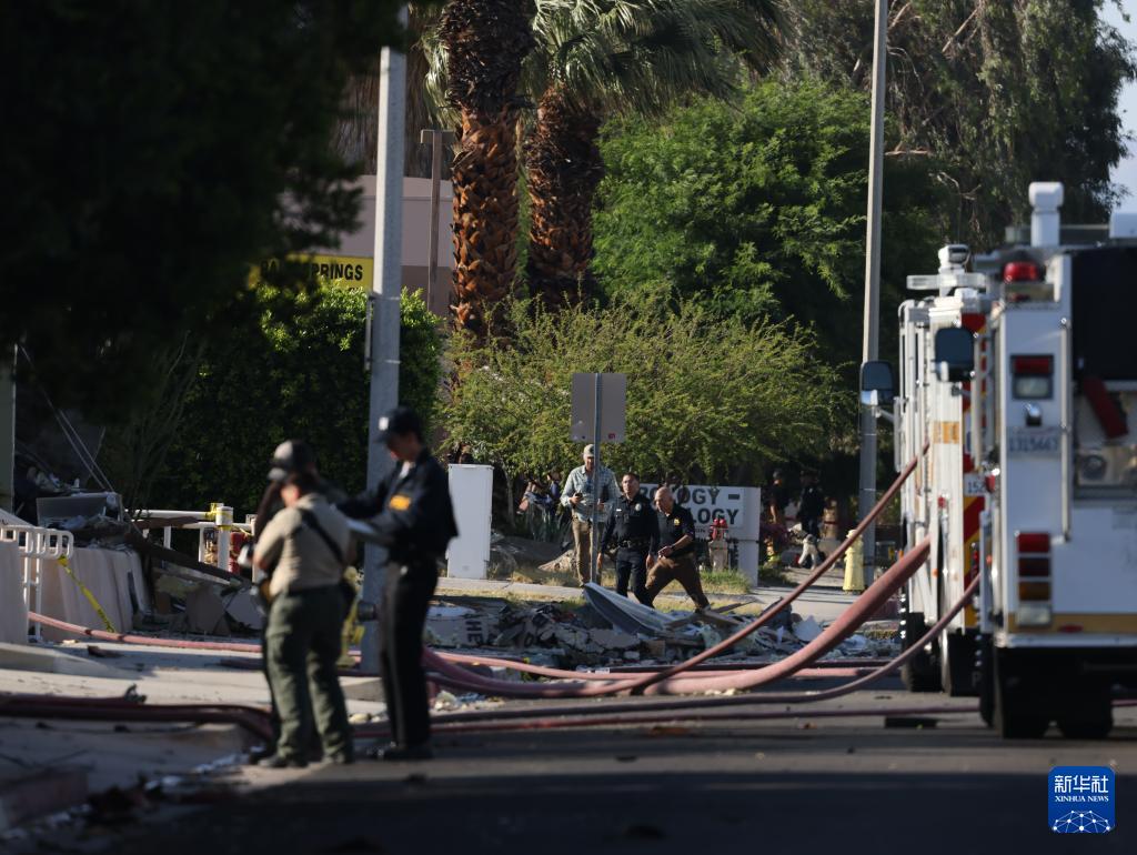 5月17日,在美国加利福尼亚州棕榈泉市,调查人员在爆炸事件现场附近工作。新华社发(邱晨摄)
