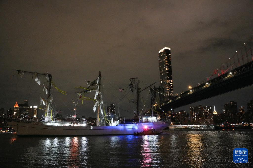 5月17日,在美国纽约,救援船只抵达墨西哥海军帆船撞桥事故现场。新华社发(章正浩摄)