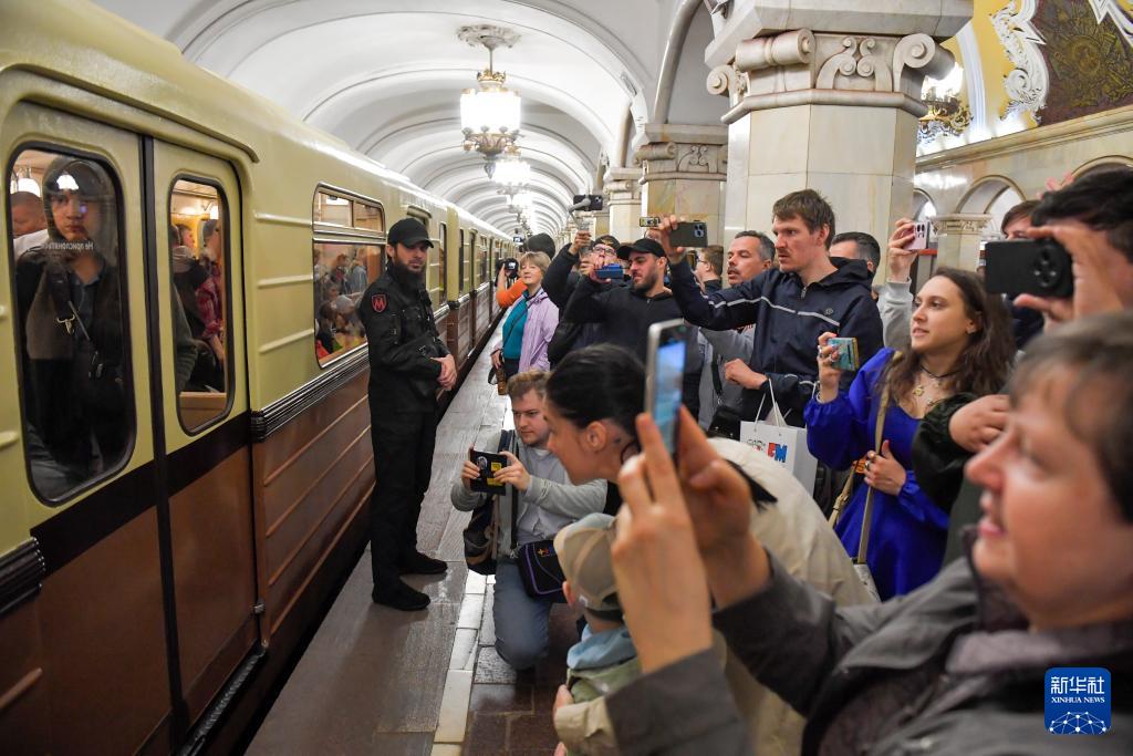 这是5月17日在俄罗斯首都莫斯科拍摄的复古列车巡游活动。新华社发(亚历山大 摄)