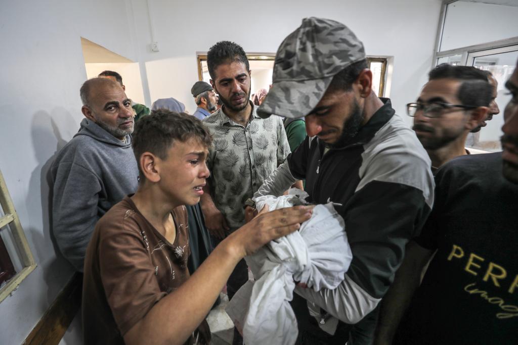 5月14日,在加沙地带北部杰巴利耶地区,巴勒斯坦人悼念遇难者。新华社发(马哈茂德·扎基 摄)