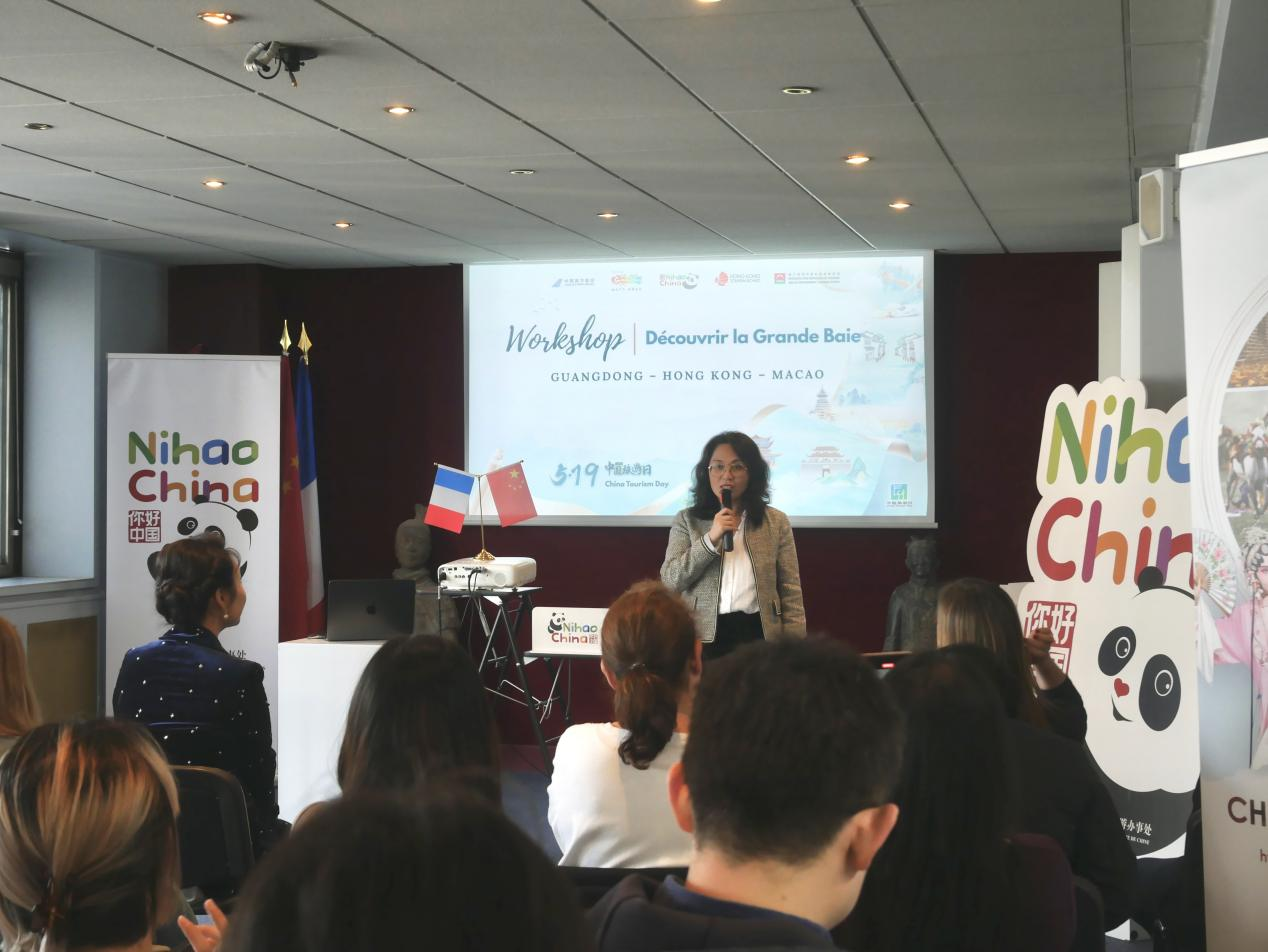 张郝淼在致辞中表示,当天恰逢中国旅游日,粤港澳大湾区不仅是中国对外开放的重要窗口,更是中国最具发展活力和国际吸引力的区域之一,因此在这一特殊时点举办推介活动,意义深远。她鼓励旅行商在即将开展的考察行程中多观察、多交流、多体验,回国后将所见所感分享给客户与同事,推动更多优质的中国旅游产品在法国市场落地生根。