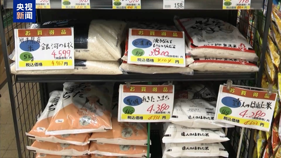 总台记者李卫兵:自从去年夏天以来,受极端高温影响,日本大米歉收,日本大米价格持续上涨。日本农林水产省5月7日公布的最新数据显示,今年4月21日到4月27日的这一周时间里,日本全国超市销售的5公斤大米平均价格为4233日元(约合210元人民币),连续17周上涨。这一价格达到了去年同期的两倍多,创下了有统计以来的最高纪录。