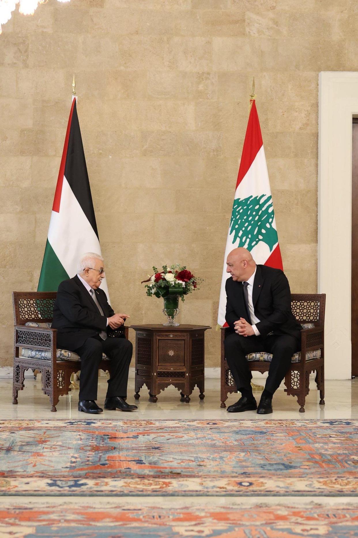 当天下午,黎巴嫩总统奥恩与阿巴斯在巴卜达宫(总统府)举行会晤,双方探讨了双边关系以及地区和国际局势的最新进展。