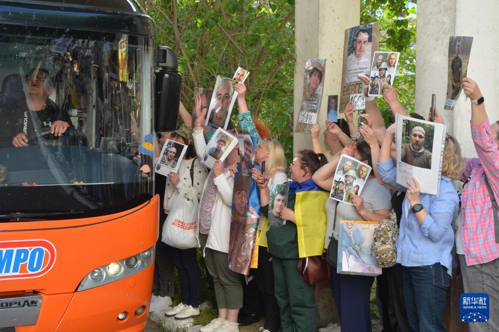 5月23日,被释放的乌方人员乘坐大巴返回乌克兰境内。新华社发(彼得·德鲁克摄)