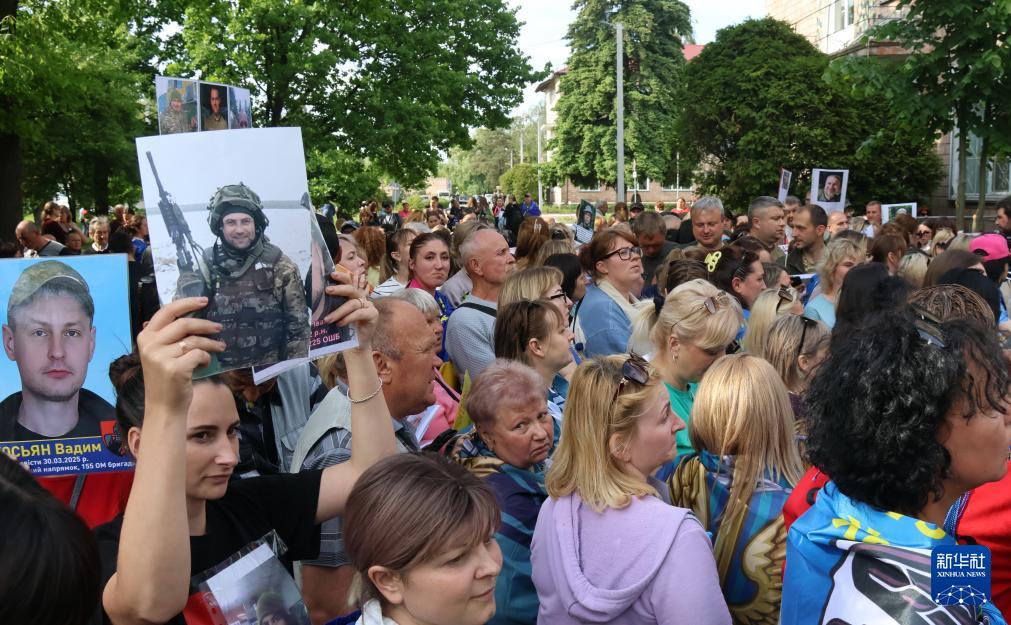 5月23日,乌克兰民众举着失踪军人的照片寻求帮助。新华社发(彼得·德鲁克摄)