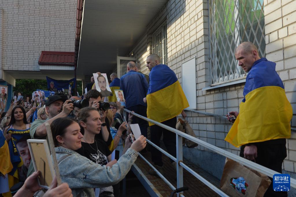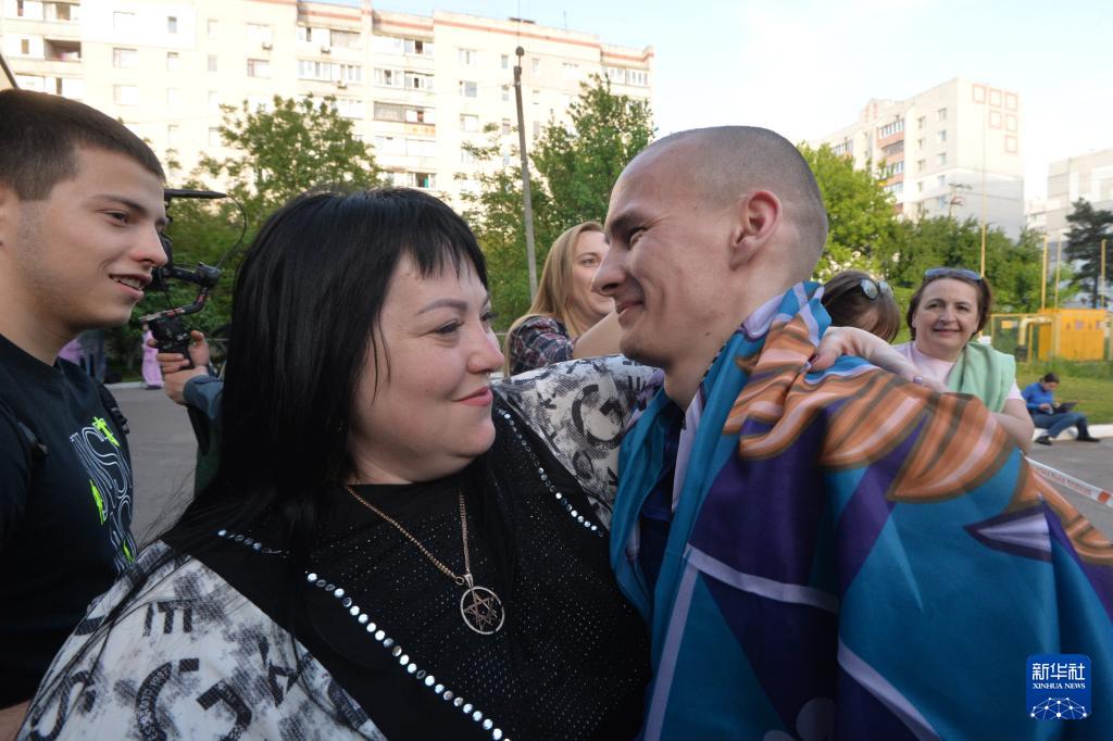5月23日,一名被释放的乌克兰军人与亲人拥抱。新华社发(彼得·德鲁克摄)